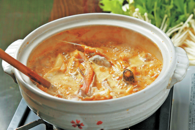 水を加えずに丸ごとのあんこうと野菜を煮込んだ、茨城県の漁師料理は